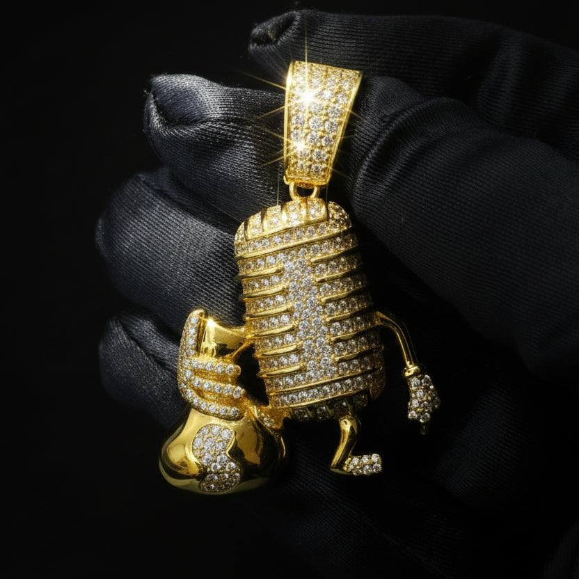 Speak success into existence with the House of Moissanite Mic with Money Bag Pendant — a bold symbol of hustle, ambition, and shine. Featuring a fully iced microphone and iconic money bag design, this pendant is built to represent the grind and the glow.