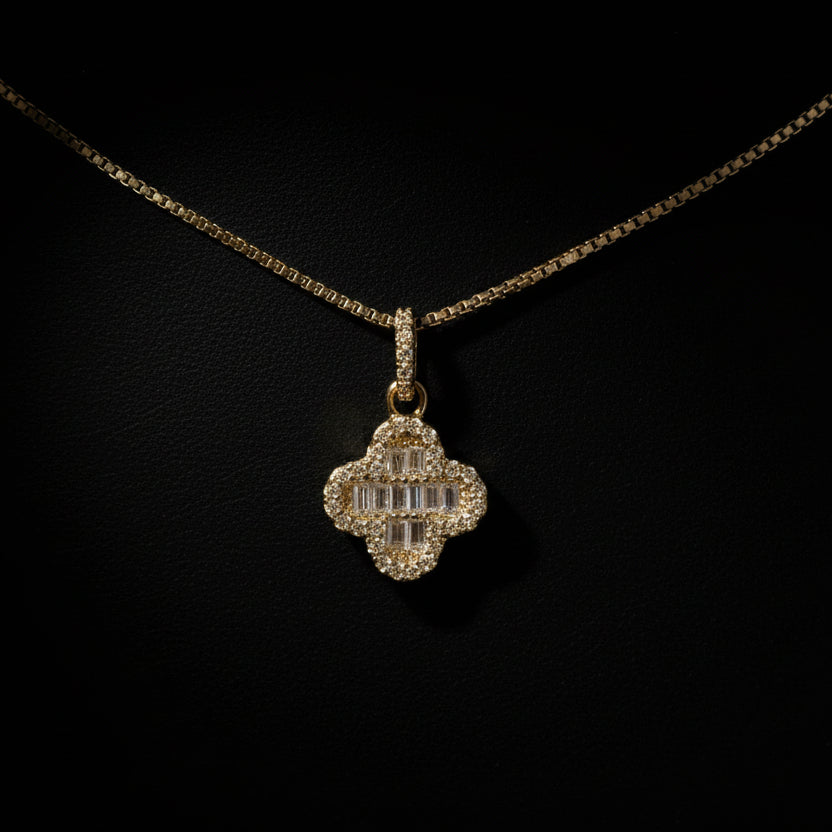 Pave Clover Design: The four-leaf clover is a timeless symbol of good luck, with each leaf representing faith, hope, love, and luck, while the pave moissanite stones add a sparkling touch of elegance.
